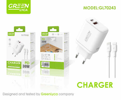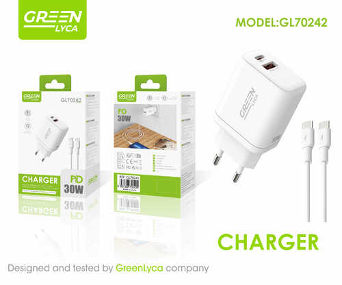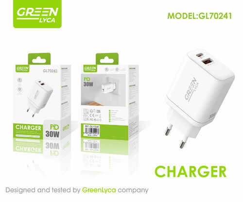 Cargador de Pared GaN USB-C PD USB-A QC 30W